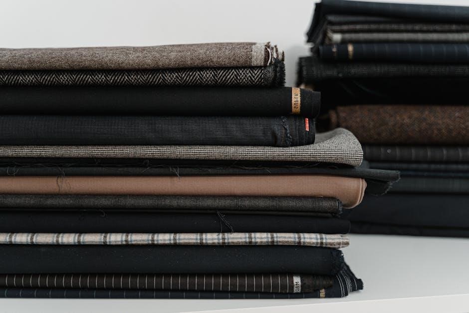 Overlooking fabric stretch and seasonality can significantly impact suit fit and comfort․ Fabrics like wool and linen naturally stretch, offering flexibility, while synthetic blends like polyester have less give․ Seasonal considerations, such as lightweight fabrics for summer and heavier ones for winter, ensure comfort and practicality․ Ignoring these factors can result in a suit that feels restrictive or unsuitable for the occasion․ For example, a wool suit in summer may cause discomfort, while a linen suit in winter lacks warmth․ Always consider fabric properties and seasonal appropriateness when selecting materials to ensure optimal fit, comfort, and durability․ Professional guidance can help tailor choices to your needs․