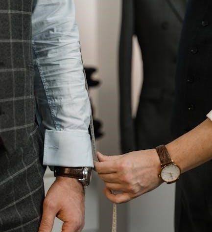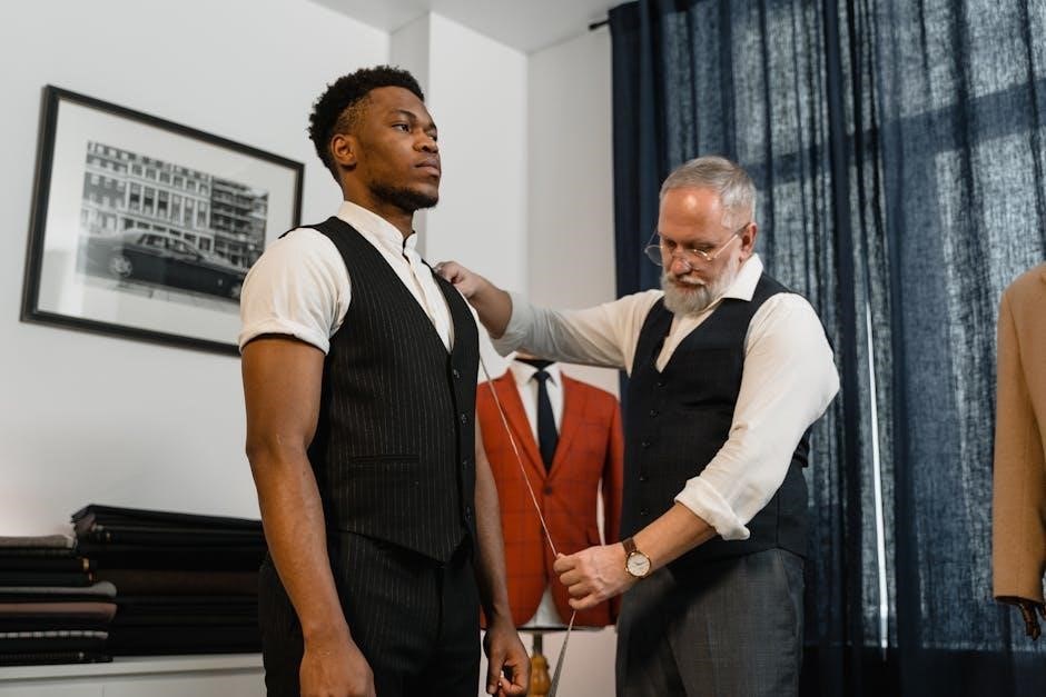 Measuring for a men’s suit requires accuracy to ensure a perfect fit․ Use a flexible tape measure to record chest, waist, shoulders, and sleeve lengths․ Proper tailoring ensures comfort and style․